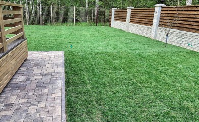 В данном случае первичная геопластика участка была проведена силами заказчика, задан перепад рельефа. Нам предстояло тщательно выровнять поверхность, подсыпать плодородный грунт и уложить газон, доведя изгибы рельефа до идеала. Такие проекты всегда очень интересны и позволяют продемонстрировать достоинства рулонного газона. Как вам результат? Нам самим очень нравится!